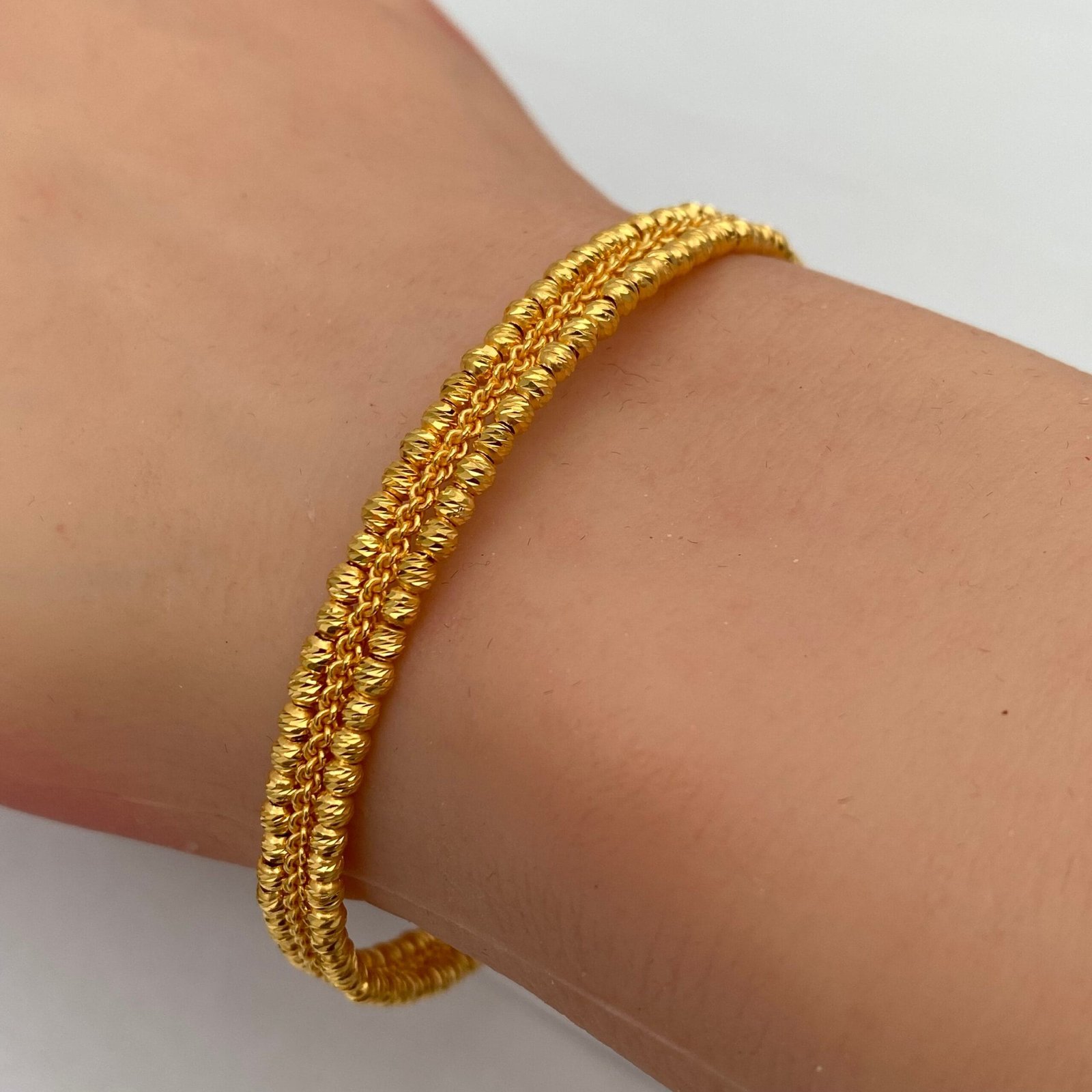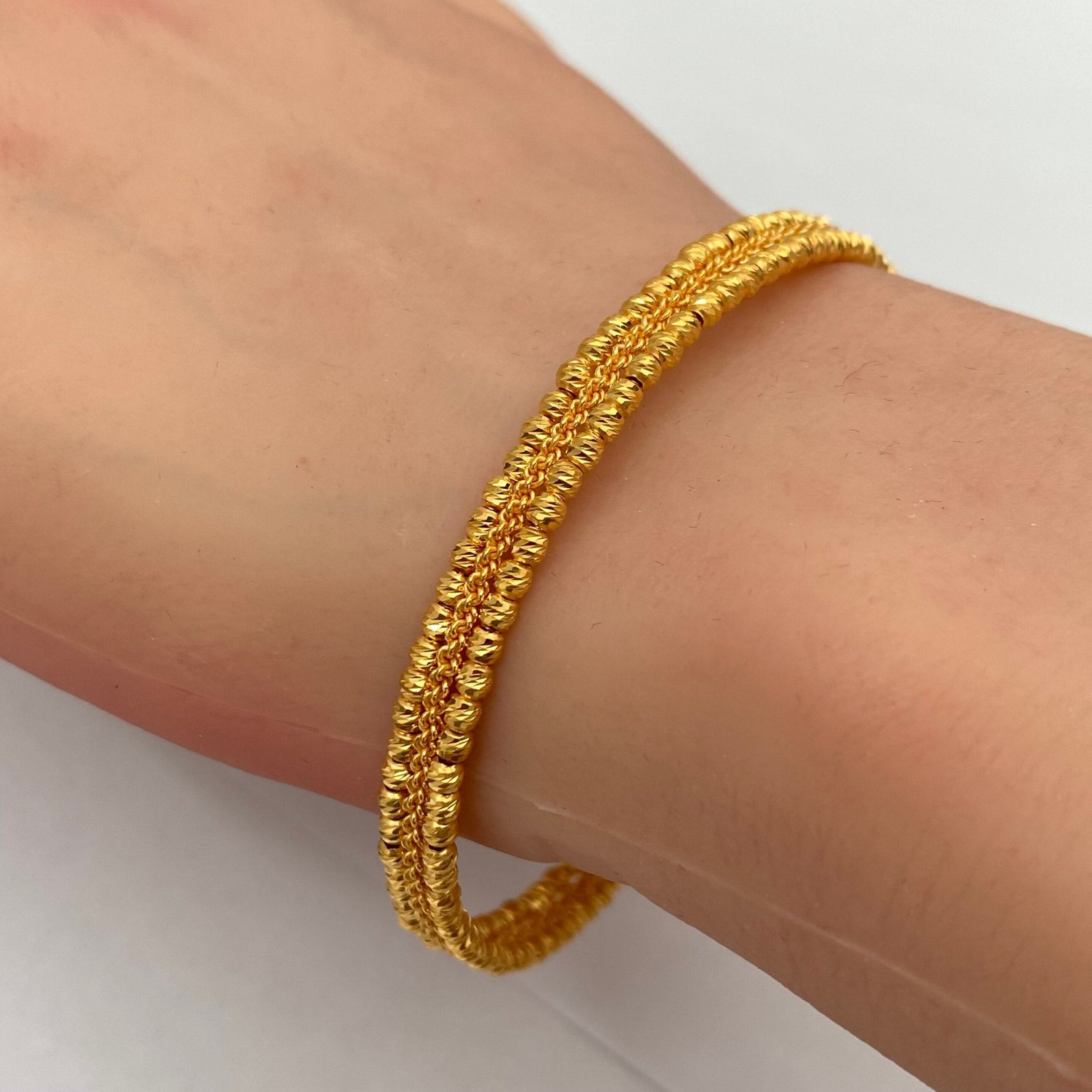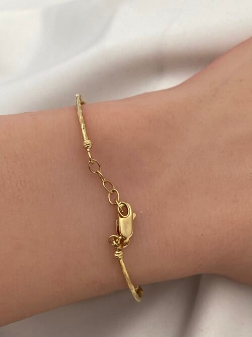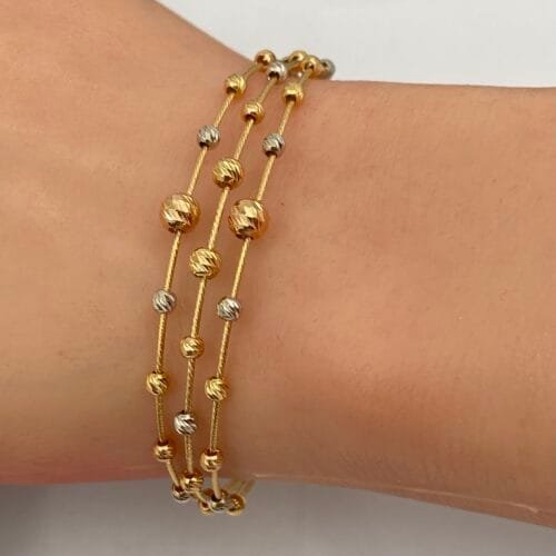 لإطلالة أنثوية راقية، اختاري من تشكيلة أساور الذهب الناعمة بتصاميم بسيطة وأنيقة تضيف لمسة من البريق والرقي إلى مظهرك اليومي.