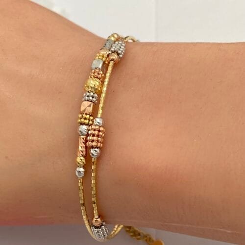 لإطلالة عصرية وشبابية، اختاري أساور القيطان الذهب التي تمزج بين الذهب الأصفر والأحجار الملوّنة بخيوط فاخرة، لتعبّري عن أسلوبك المميز بكل ثقة وأناقة.