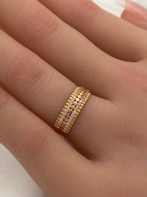 تميّزي بتصميم لا يخطئه النظر مع طقم اسوارة وخاتم ذهب المرصّعة بفصوص براقة تمنحك بريقًا أنثويًا رائعًا. مثالية للمناسبات الخاصة والسهرات الفاخرة.