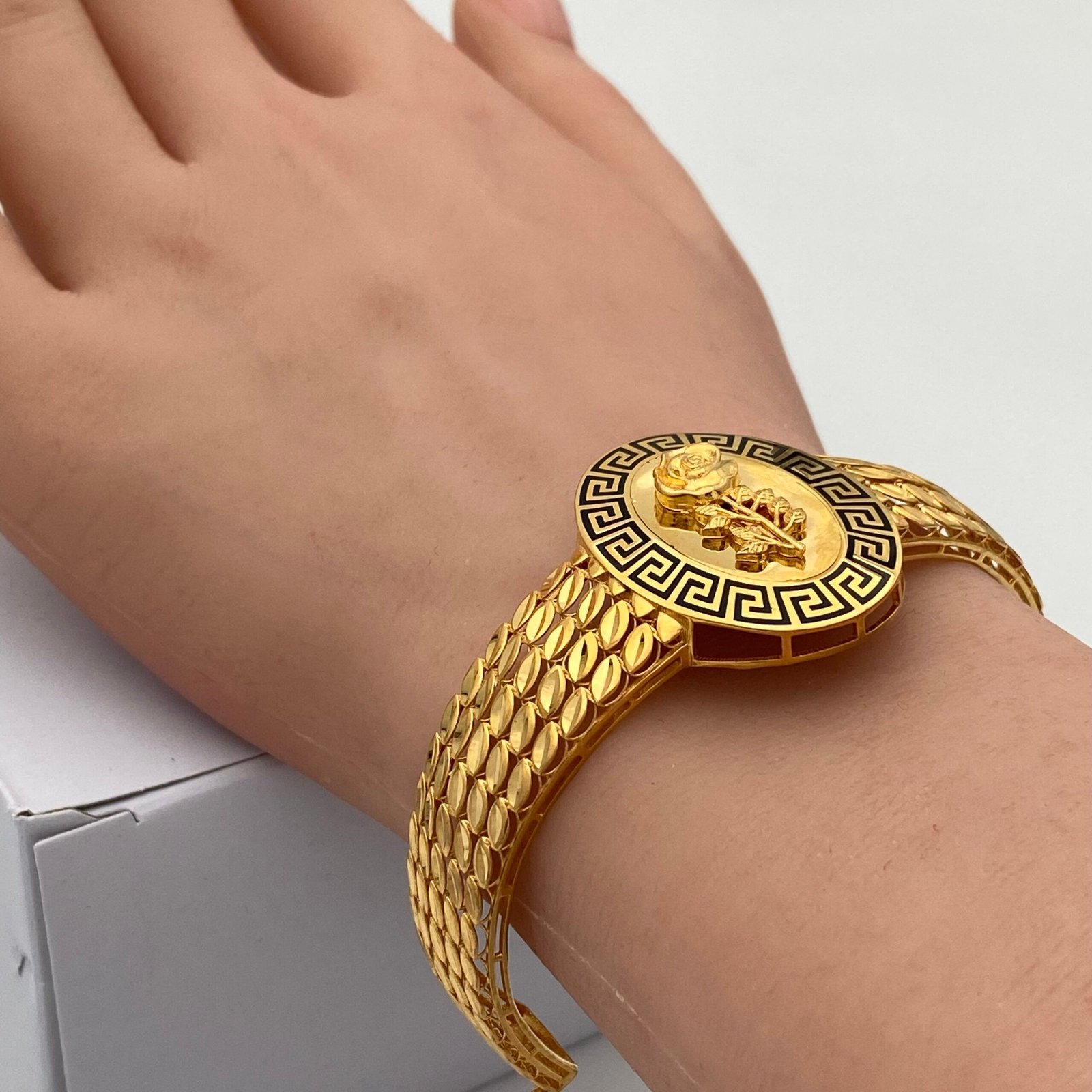 اختاري من بين مجموعة أساور الذهب عيار 21 التي تجمع بين الفخامة واللمعان الغني. تصاميم مستوحاة من الذوق الخليجي الأصيل لتمنحك حضورًا ملكيًا أينما كنتِ.