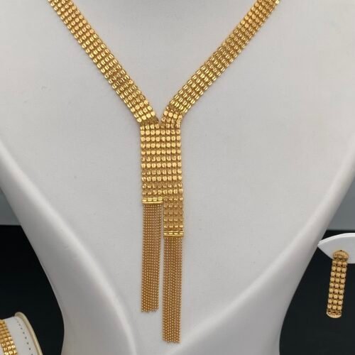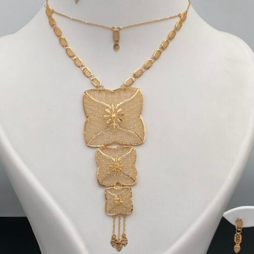 استمتعي بفخامة لا مثيل لها مع أطقم ذهب فخمة عيار 21 تجمع بين التصميم الكلاسيكي واللمسة العصرية. مثالية للسهرات والمناسبات الرسمية، وتمنحك حضورًا لافتًا يعكس ذوقك الرفيع وأناقتك اللامحدودة.