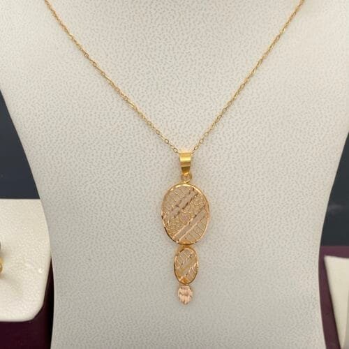 جميع أنصاف الأطقم الذهبية مصنوعة من ذهب أصلي عيار 18 و21 وتأتي مع شهادات ضمان رسمية للجودة والنقاء.