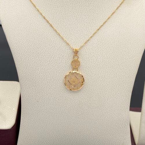جميع أنصاف الأطقم الذهبية مصنوعة من ذهب أصلي عيار 18 و21 وتأتي مع شهادات ضمان رسمية للجودة والنقاء.
