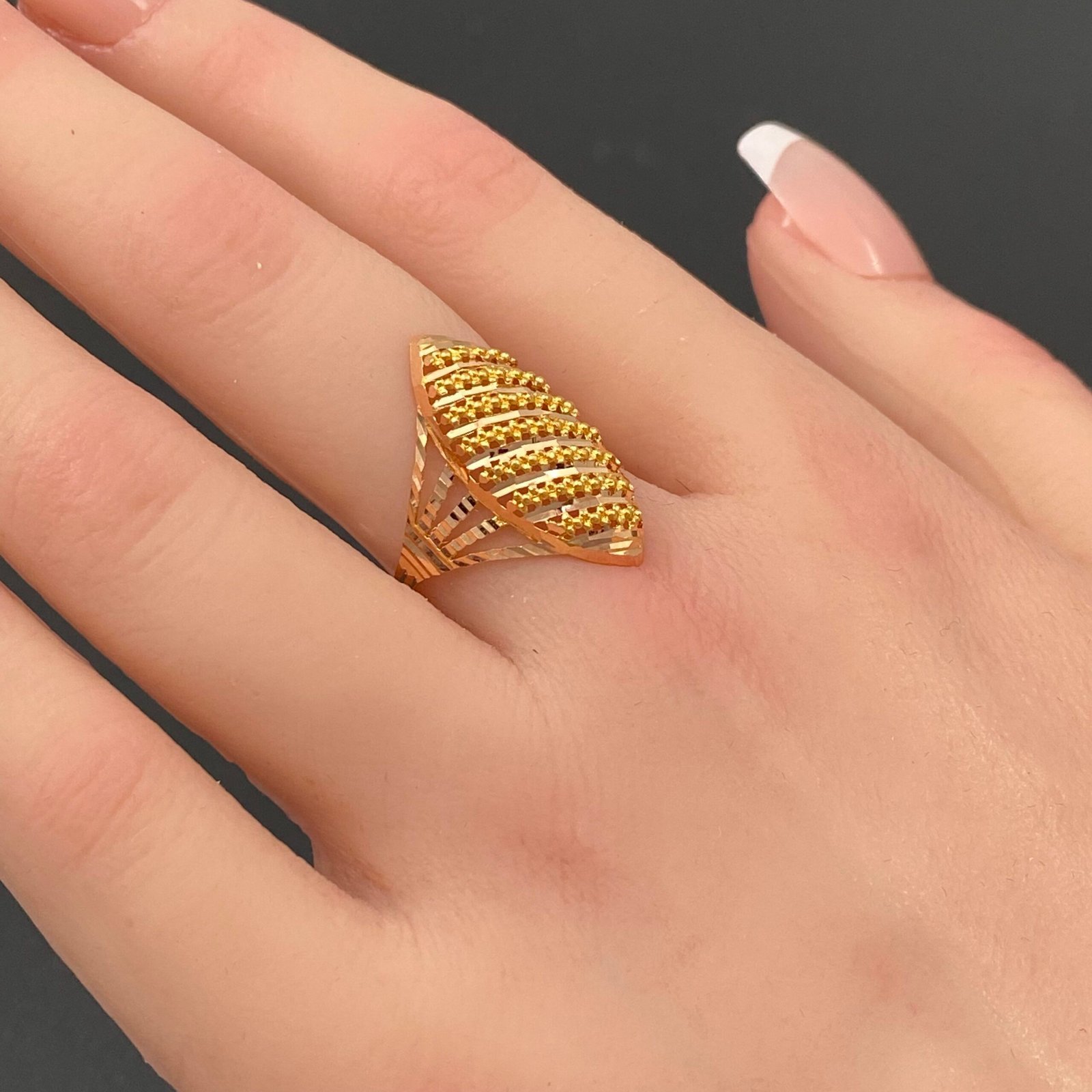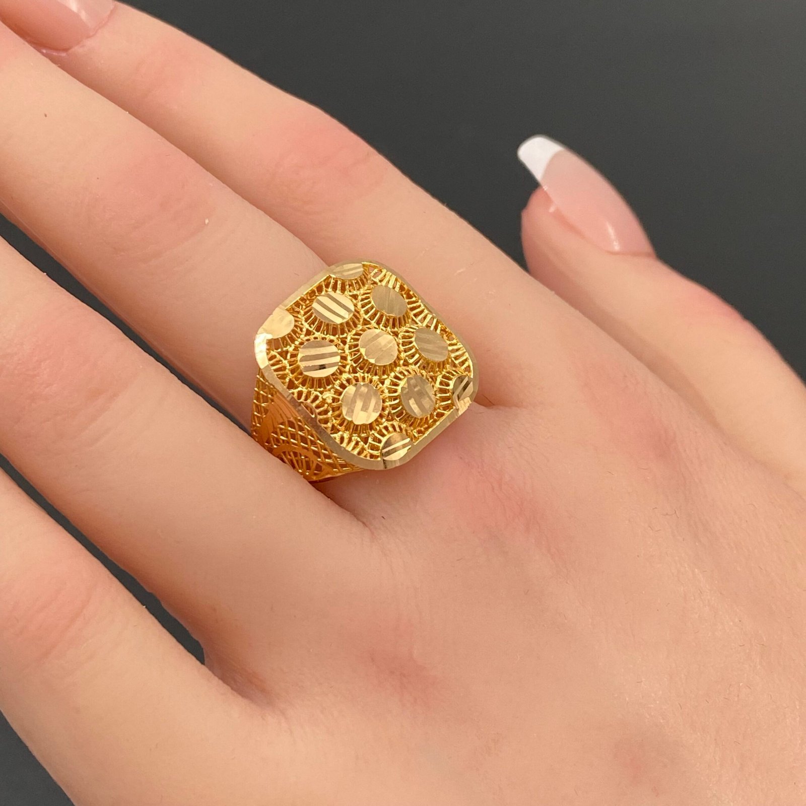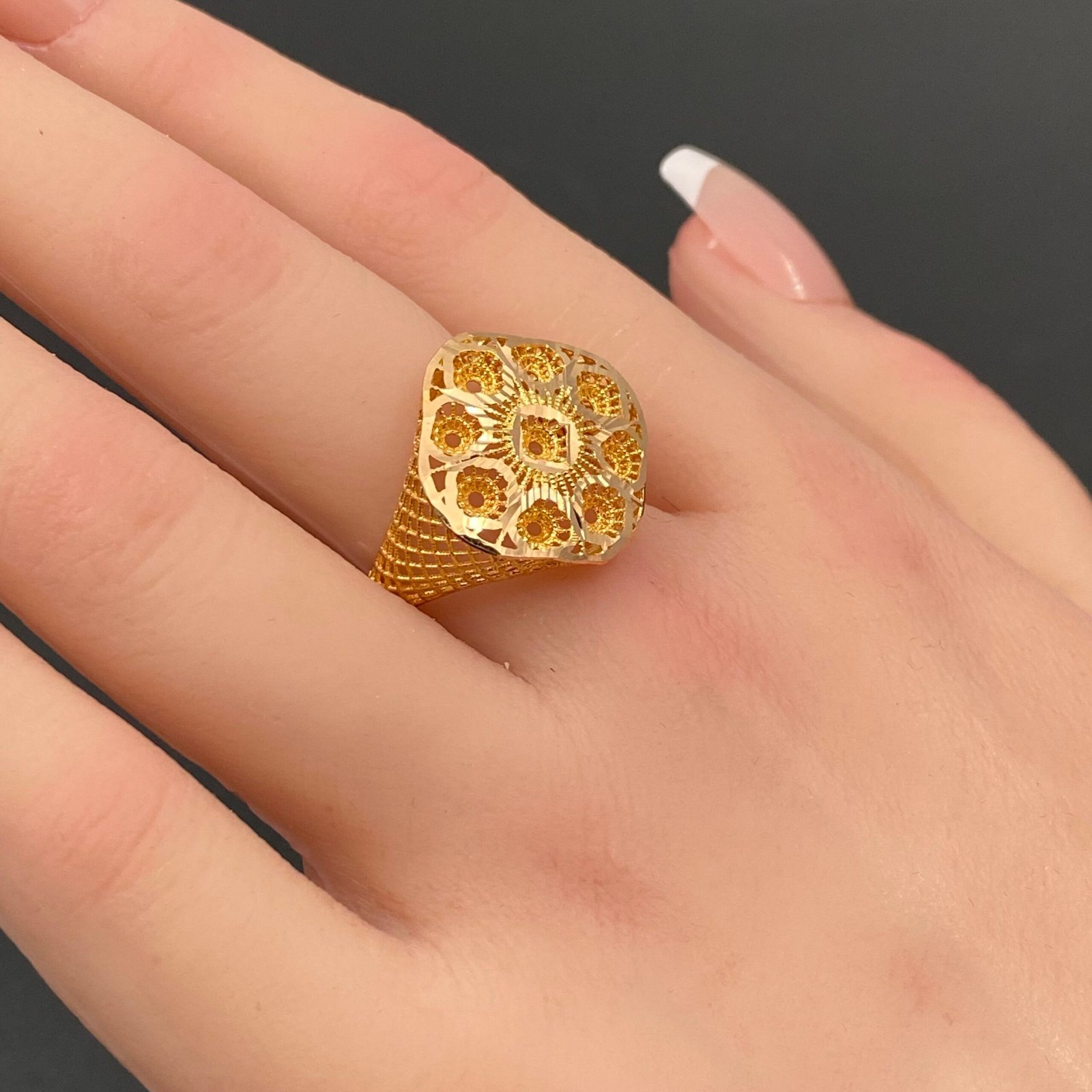 لمن تبحث عن الجرأة والتفرّد، اكتشفي خواتم الذهب الكبيرة التي تضيف لمسة من الفخامة والهيبة. تصاميم مبهرة تجمع بين الفن والإبداع لتزيّن يديك بأسلوب فريد.