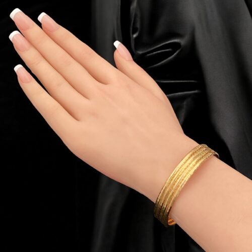 إذا كنتِ تبحثين عن المتانة مع الفخامة، فاختاري غوايش ذهب صب بتصميم متين يبرز اللمعة الغنية للذهب، لتكون خيارًا مثاليًا للاستخدام اليومي والمناسبات الخاصة.