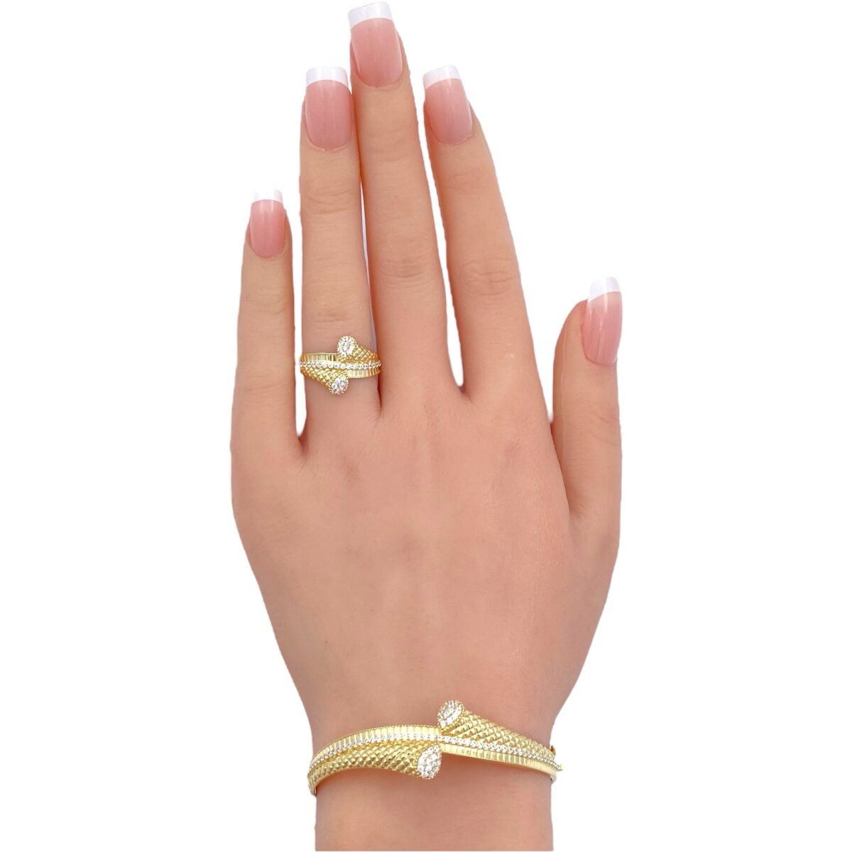 اسوارة وخاتم ذهب عيار 18 وزن 10.79 جم لإطلالة مثيرة تليق بك