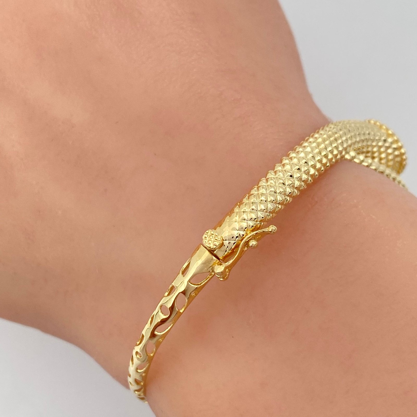 - تصميم استثنائي على شكل ثعبان مرصع يجمع بين الجرأة والأناقة في آنٍ واحد.