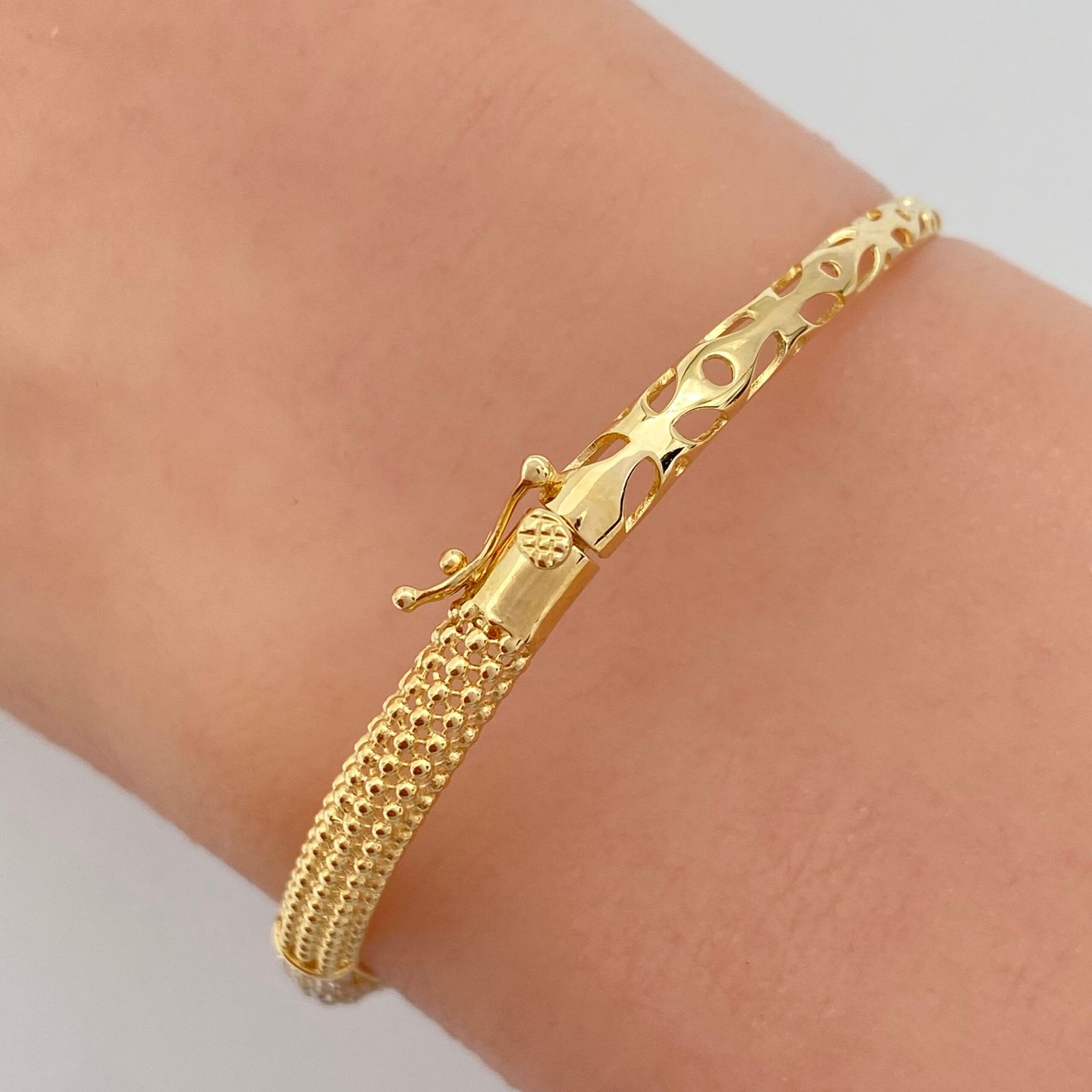 - سوار ذهب وخاتم مصنوعين من ذهب أصفر نقي عيار 18 يمنحهم لمعانًا يدوم ويبرز الفخامة.