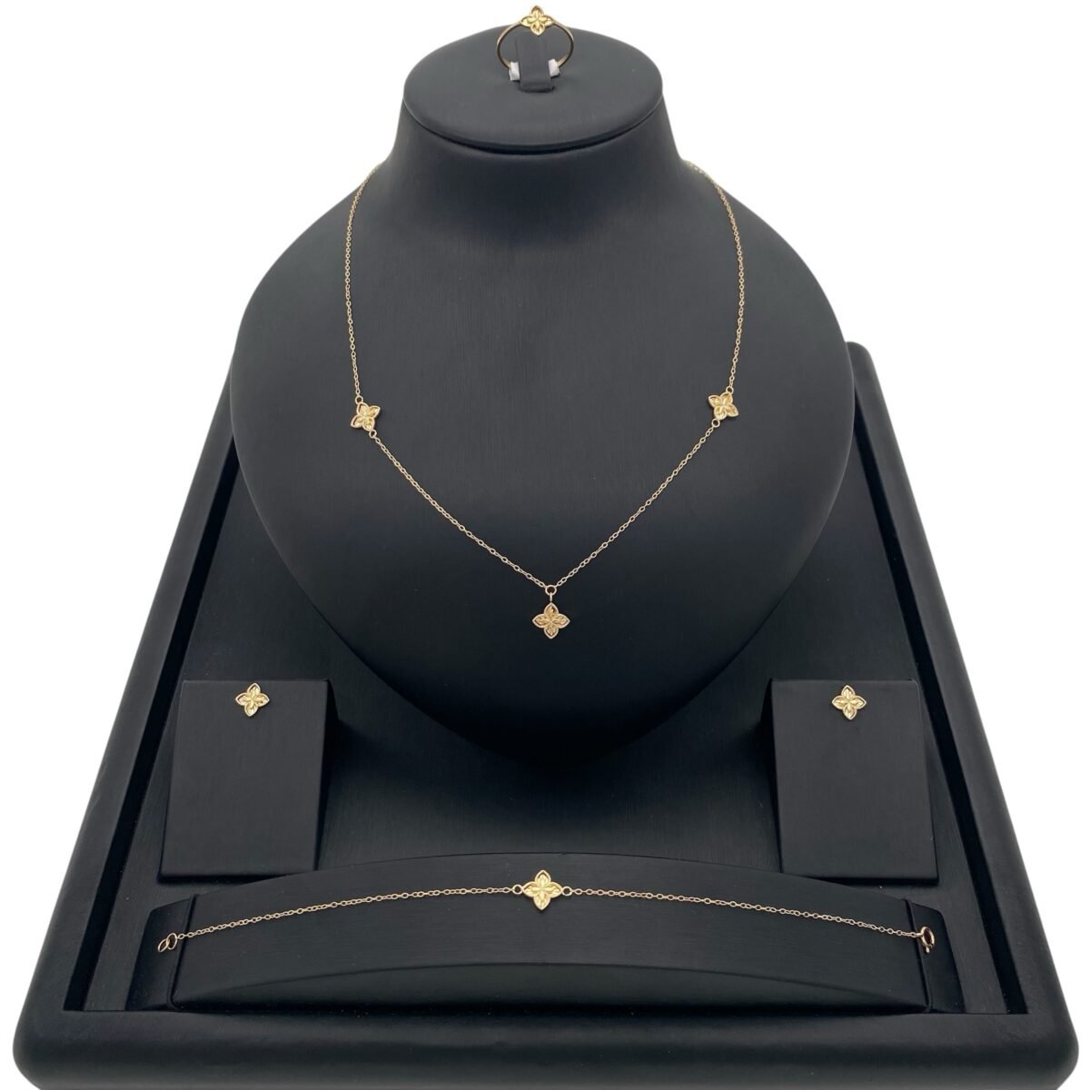مواصفات طقم ذهب مستوحي من روبرتو كوين عيار 18 وزن 5.74 جم لإطلالة عصرية