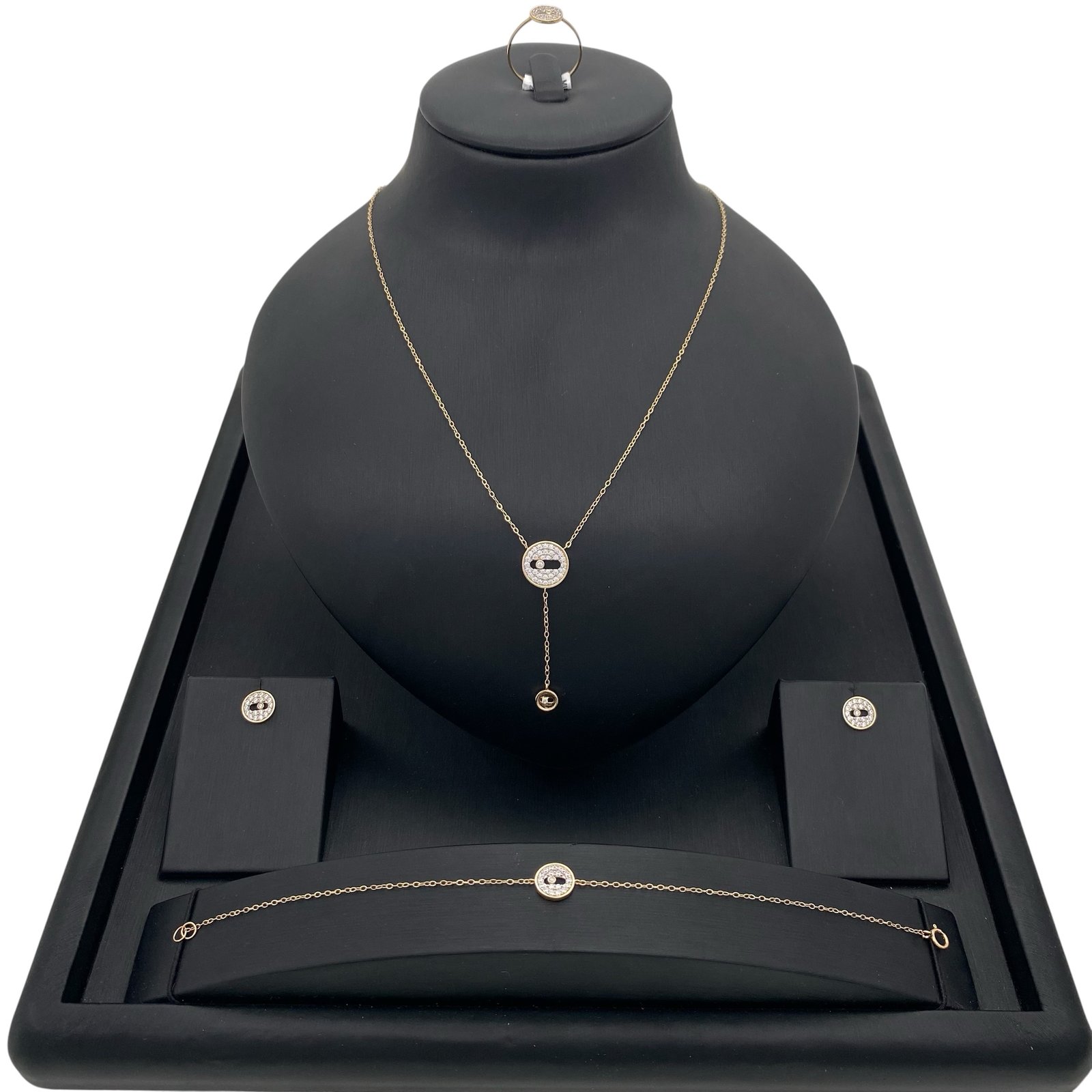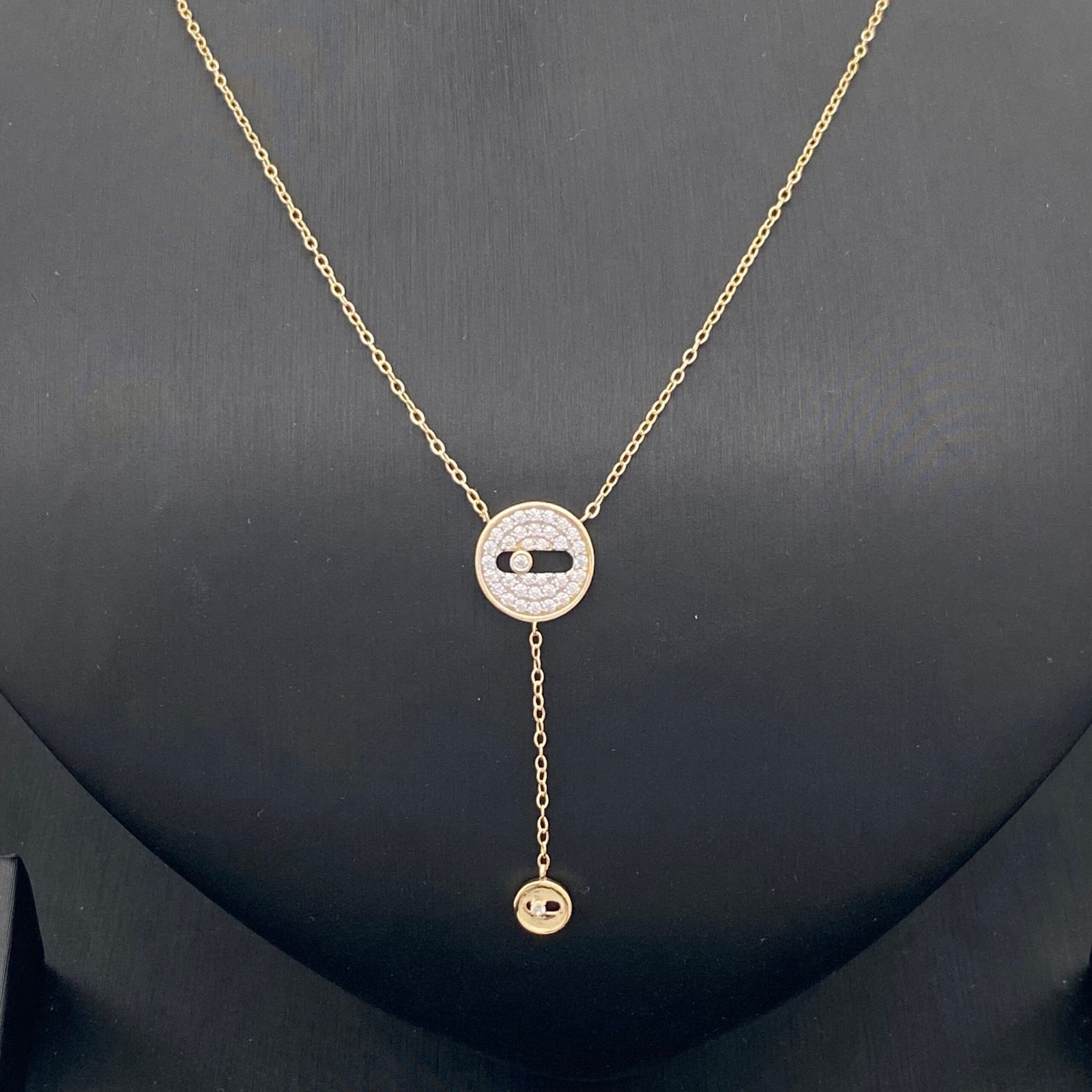 أبهري الجميع بإطلالة تخطف الأنفاس مع طقم ذهب عيار 18 بتصميم مدور أنيق وعقد متدلٍ يمنحك لمسة فخامة لا تُقاوم.