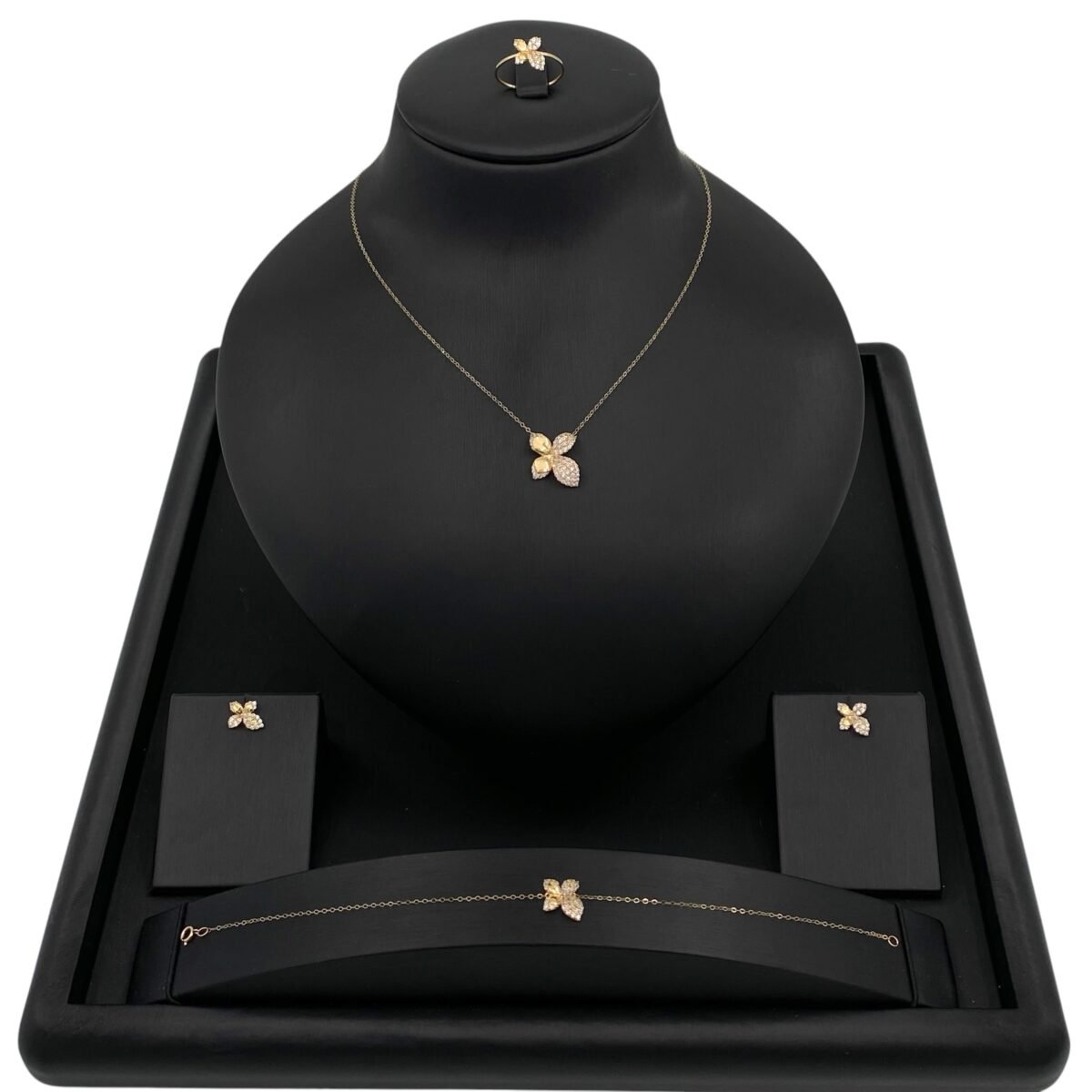 طقم ذهب عيار 18 وزن 3.16 جرام، احصل عليه الآن من قمة زاوية الشفاء للذهب والمجوهرات في الرياض تصميم فاخر يناسب كل الأذواق. مثالي لجميع المناسبات الخاصة.