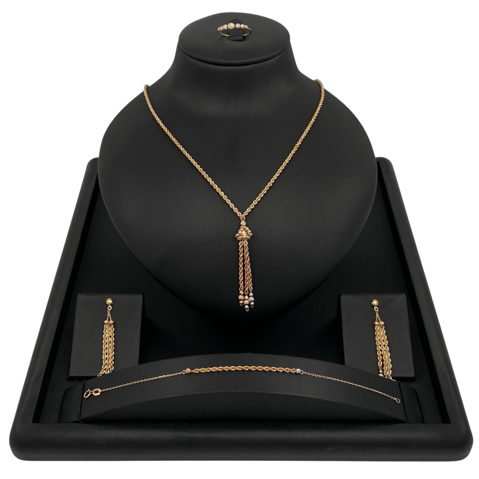 طقم ذهب عيار 18 وزن 9.05 جرام، احصل عليه الآن من قمة زاوية الشفاء للذهب والمجوهرات في الرياض تصميم فاخر يناسب كل الأذواق. مثالي لجميع المناسبات الخاصة.