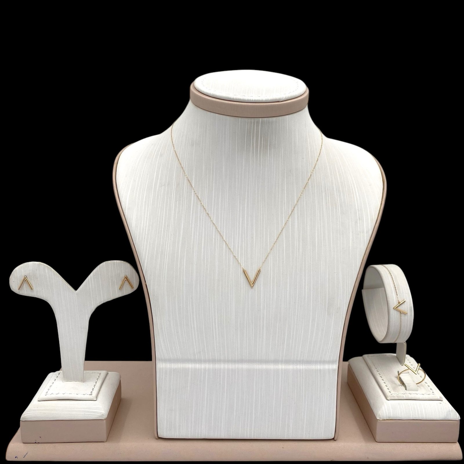 طقم ذهب عيار 18 ناعم وخفيف بلمسة أنثوية جذابة. الخيار المثالي لهدية رقيقة أو لإطلالة يومية ناعمة.
