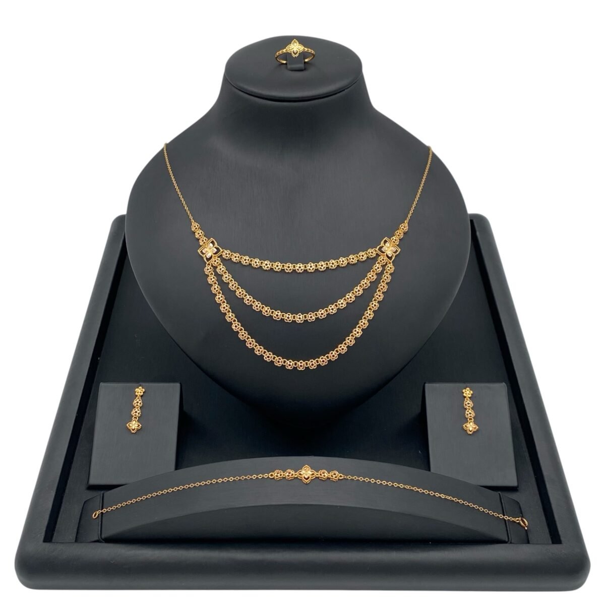 طقم ذهب عيار 21 وزن 14.13 جرام، احصل عليه الآن من قمة زاوية الشفاء للذهب والمجوهرات في الرياض تصميم فاخر يناسب كل الأذواق. مثالي لجميع المناسبات الخاصة.