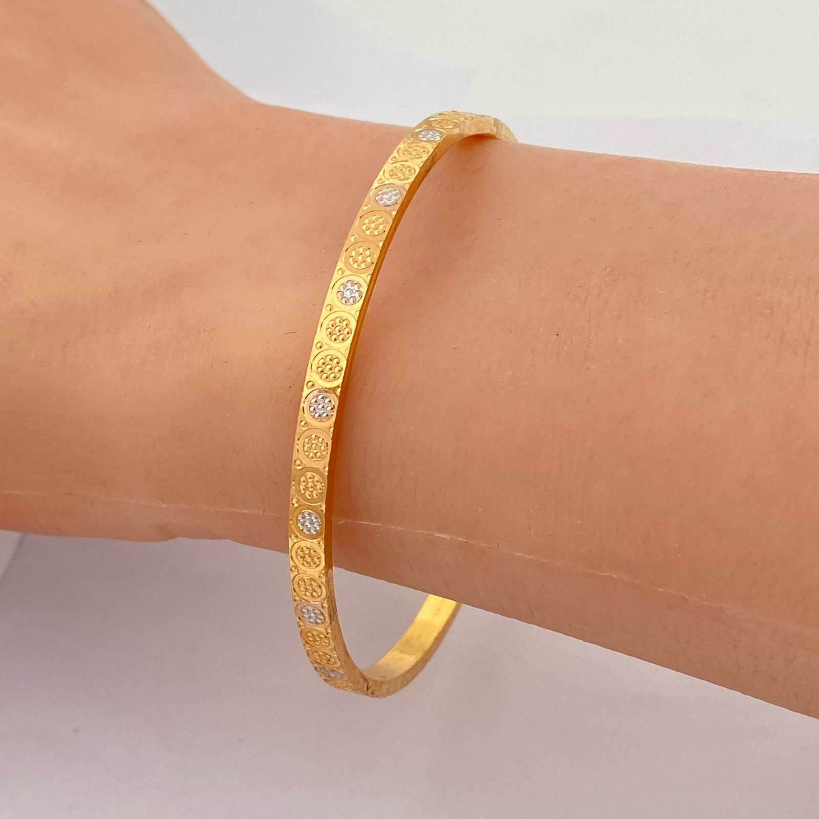 - ذهب عالي الجودة: عيار 21 يضمن لك متانة فائقة ولمعاناً ثابتاً يدوم طويلاً.
