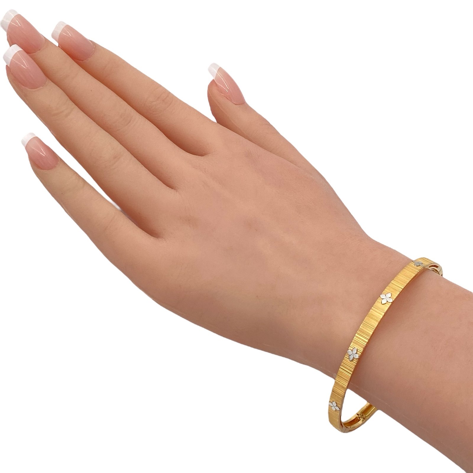 تميّزي بإطلالة تخطف الأنظار مع غوايش ذهب نسائي من قمة زاوية الشفاء للذهب والمجوهرات، واستمتعي بتجربة تسوق فاخرة تشمل تغليف الهدايا الأنيق وخدمة الشحن السريع. اقتني الآن غويشتك العريضة بنقوش روبرتو كوين وتألقي بفخامة الذهب الأصلي في كل لحظة!