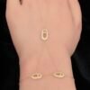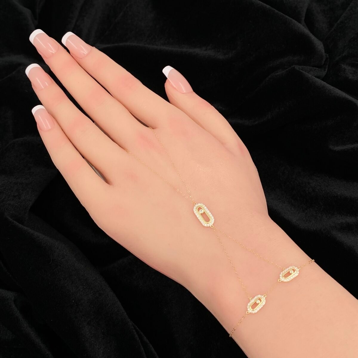 هل تبحثين عن مجوهرات أنيقة وعصرية تضفي لمسة من الفخامة على إطلالتك؟ اليكِ كف ذهب عيار 18 وزن 1.4 جرام الخيار المثالي الراقي. تجمع هذه القطعة بين الأناقة والجودة، والأنوثة.