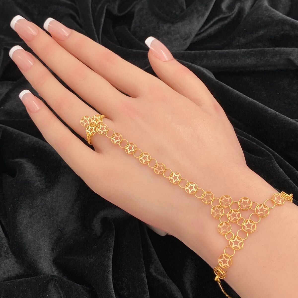 هل تبحثين عن مجوهرات أنيقة وعصرية تضفي لمسة من الفخامة على إطلالتك؟ اليكِ كف ذهب عيار 21 وزن 6.72 جرام الخيار المثالي الراقي. تجمع هذه القطعة بين الأناقة والجودة، والأنوثة.