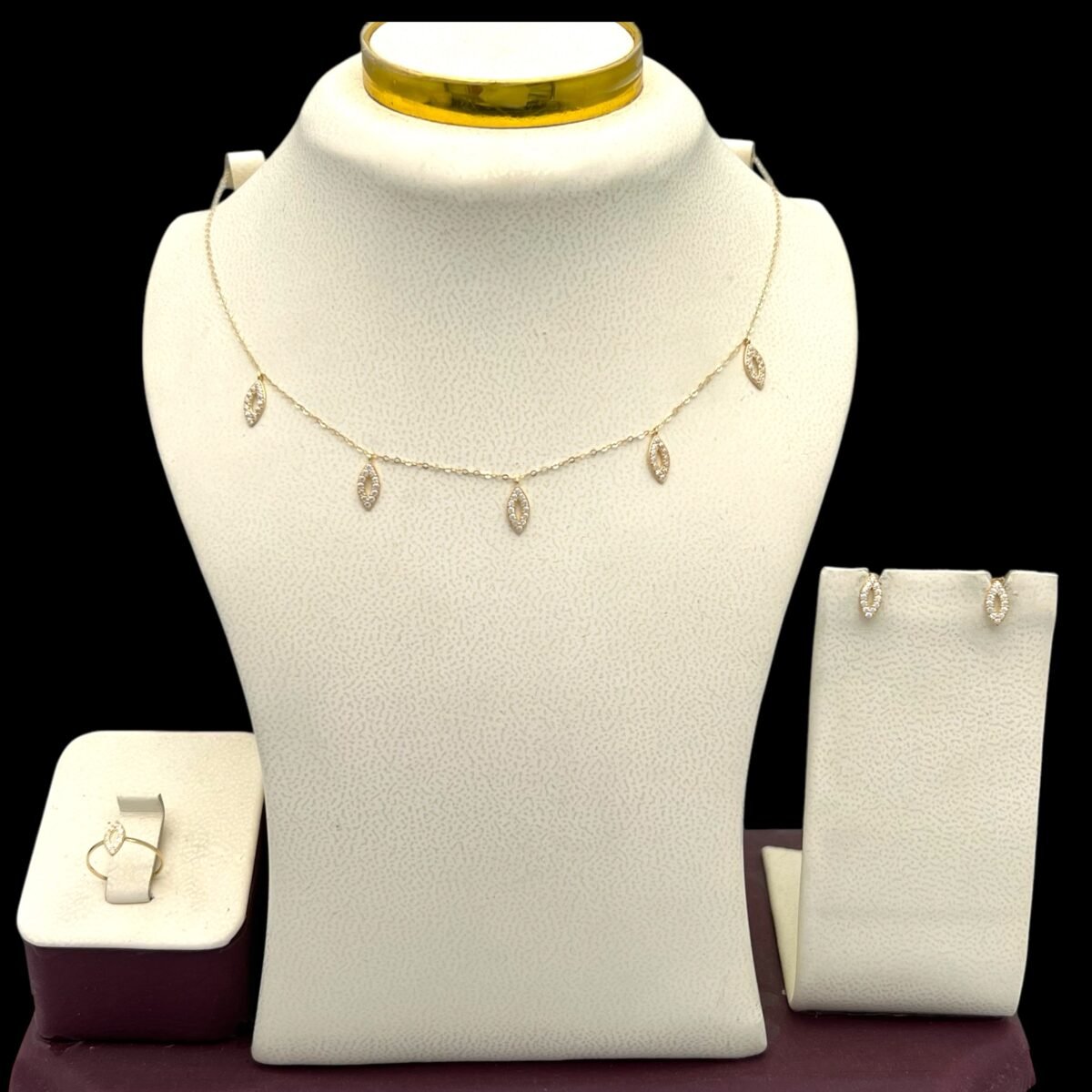 كل قطعة مصنوعة من ذهب عيار 18 أو 21 حسب الاختيار، مع شهادة جودة، وضمان على كل طقم يتم شراؤه من متجرنا.