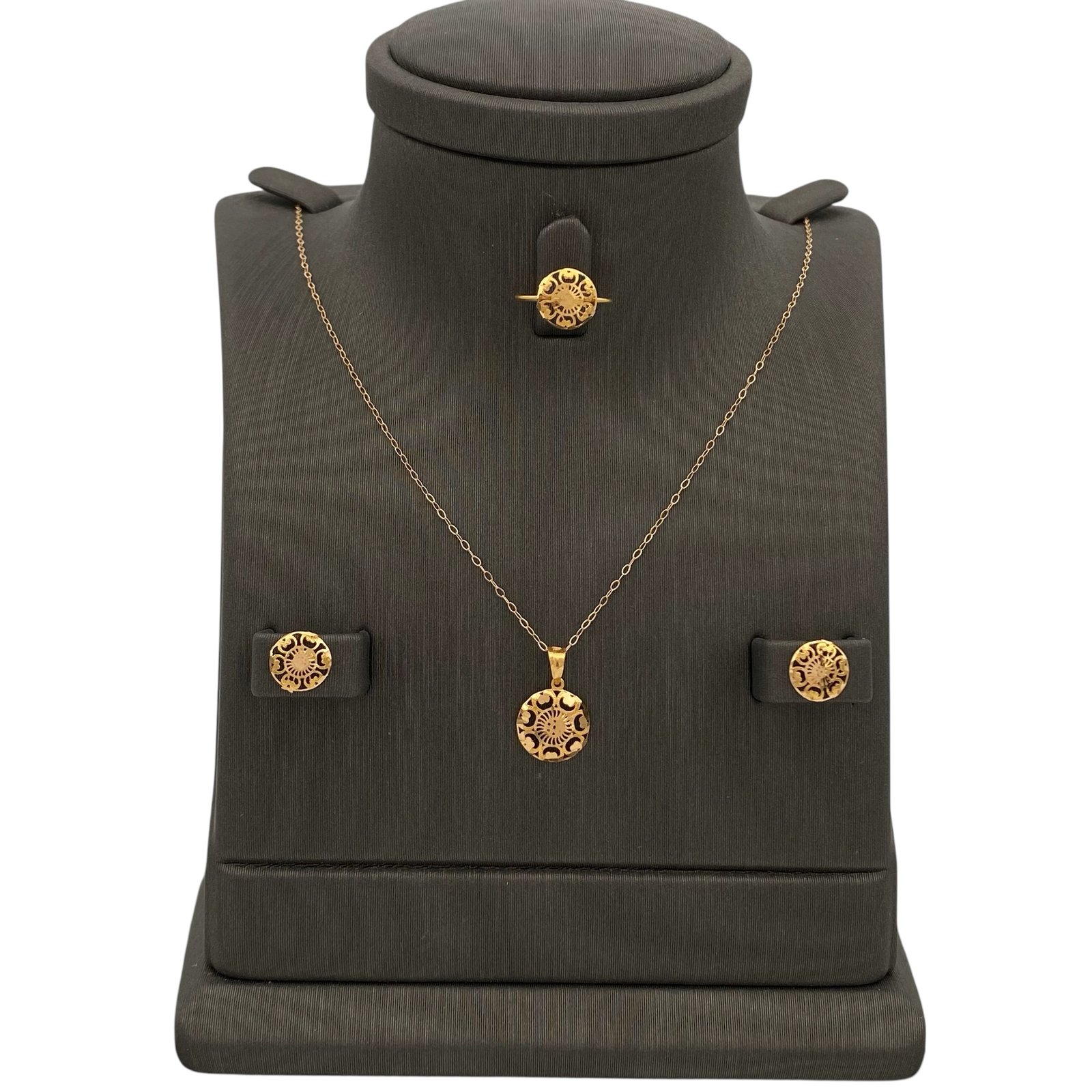 كل قطعة مصنوعة من ذهب عيار 18 أو 21 حسب الاختيار، مع شهادة جودة، وضمان على كل طقم يتم شراؤه من متجرنا.