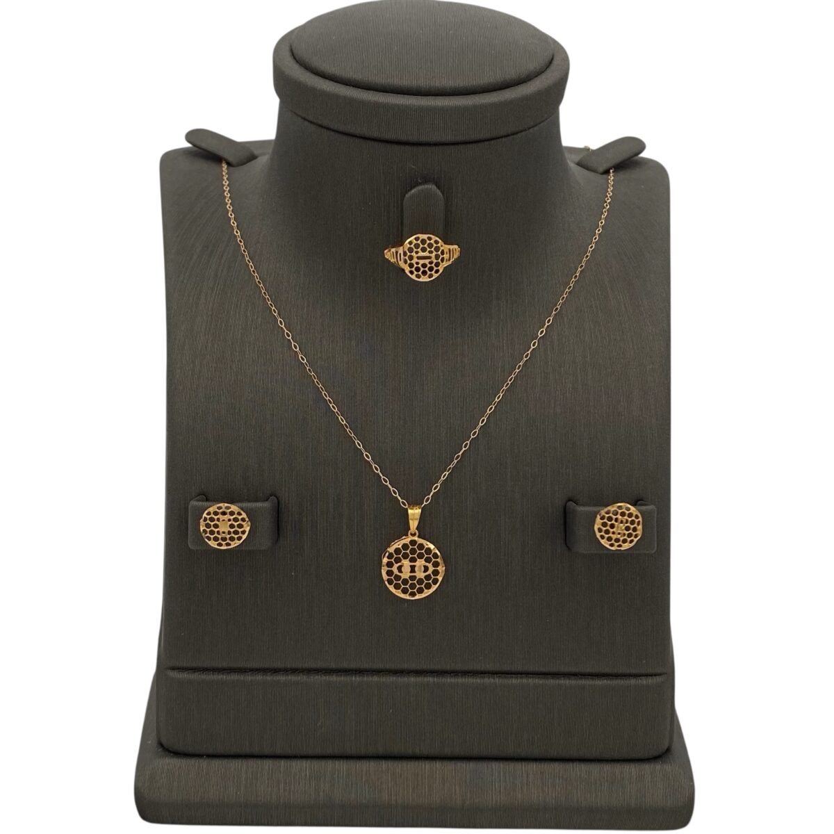 كل قطعة مصنوعة من ذهب عيار 18 أو 21 حسب الاختيار، مع شهادة جودة، وضمان على كل طقم يتم شراؤه من متجرنا.